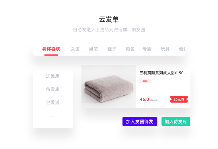 云发单系统 独家整合云发单系统,自动发送人工选品到微信群,朋友圈