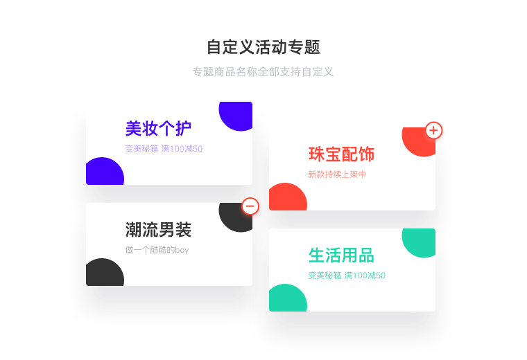 自定义模版装修 50个小程序均可自定义模版,一键拖拽式装修,让你轻松