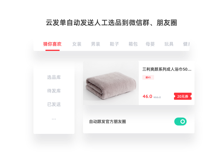 云发单系统 独家整合云发单系统,自动发送人工选品到微信群,朋友圈
