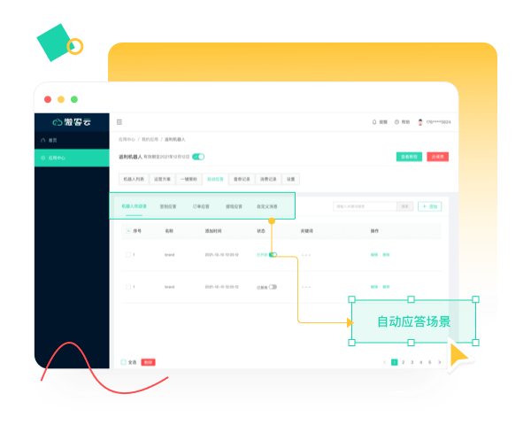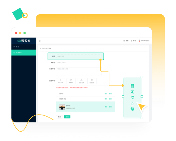 欢迎、签到、关键词、订单、自定义等多种场景应答设置